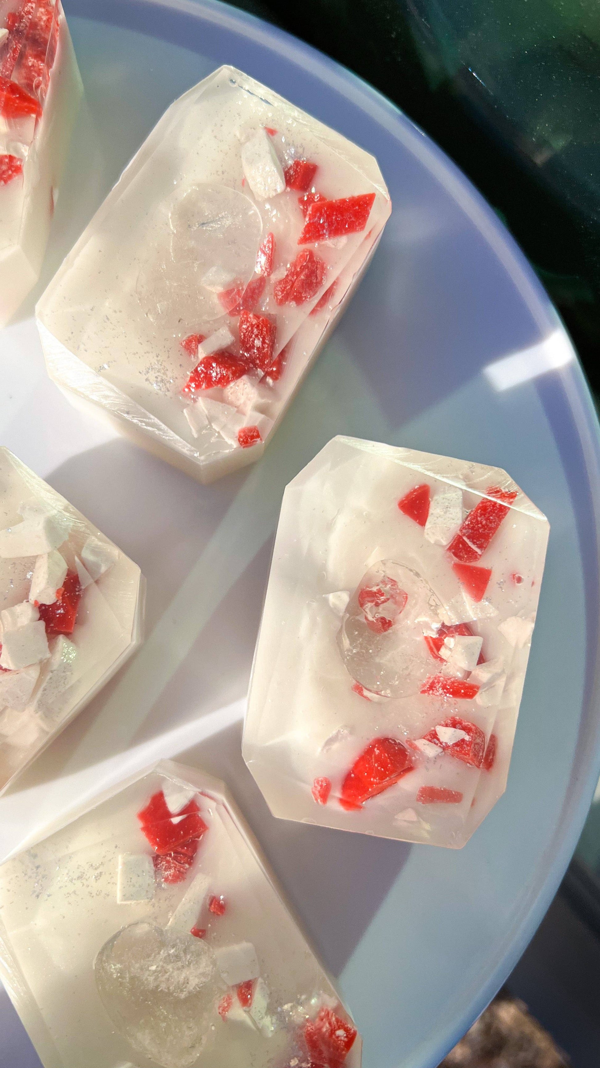 Cuddle up on Peppermint Lane this Christmas! Our delightfully minty bar soap is perfect for washing away the grime of holiday hustle and bustle. Its vibrant peppermint scent will leave your skin feeling invigorated and refreshed for the season! Infused with Clear Quartz, this crystal is a universal boost and can enhance the energy around it. It helps us reignite our true identity while showing us the path toward enlightenment. Walk through the snow with a warm hot white mocha with crushed candy canes latte blend. This creamy and delicious aroma will leave you feeling clean and festive!